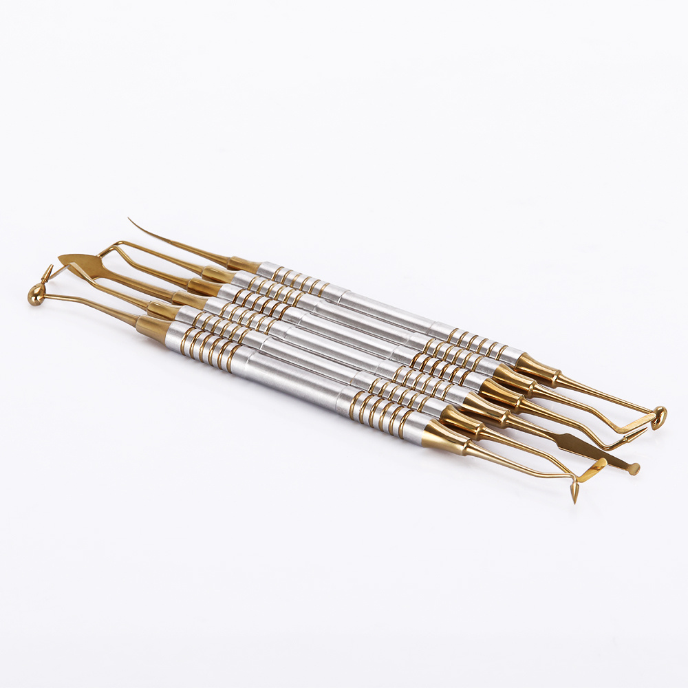 6pcs Dental Composite Resin Filling Spatule Tête plaquée titane Résine de remplissage Set poignée épaisse Set de restauration Instrument dentaire