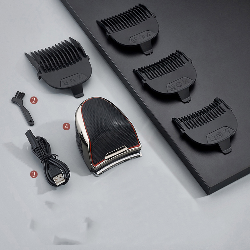 tondeuse à cheveux + quatre segments de positionnement peigne + câble de données USB + petite brosse à cheveux
